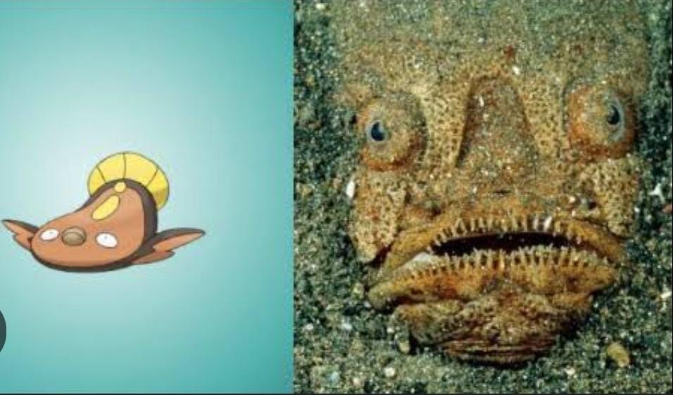 Stunfisk es un Pokémon de tipo Tierra y Eléctrico, mientras que el pez astrónomo (stargazer) es un pez marino real que comparte varias similitudes con el personaje ficticio, como su habilidad para ocultarse y usar descargas eléctricas.